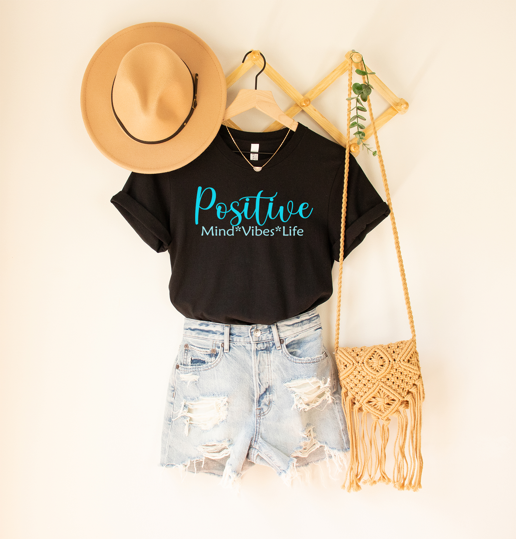 Embrace boho vibes with our stylish jersey tee! Featuring the uplifting mantra "Positive Mind Vibes Life," it's a comfy statement piece for your everyday adventures.